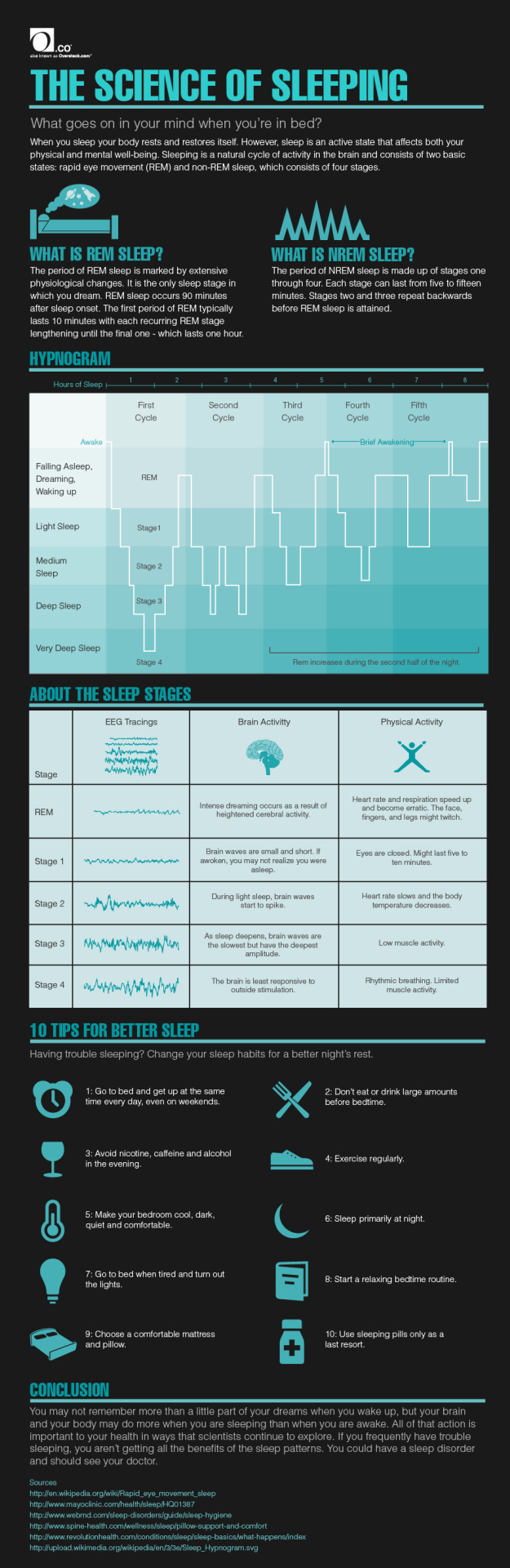 We all know that we dream while we’re asleep but how much do we really know about what goes on in our brains while we’re in dreamland? Take a look at this great infographic  from Care for the Body that sets out the basics of sleep at a glance: